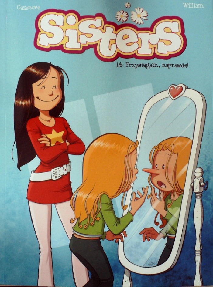 Czternasty tom humorystycznej serii o perypetiach dwóch sióstr: nastoletniej Wendy i o kilka lat młodszej Marine. Marine to niepoprawna kłamczucha. Obojętnie, czy opowiada koleżankom o motylach, czy tacie o swoich stopniach, czy mamie o tym, kto stłukł szklany blat stołu - zawsze zmyśla. Nie potrafi się powstrzymać. Niedługo będzie miała nos jak Pinokio... Co gorsza, ona i jej siostra twierdzą, że to rodzice nauczyli je oszukiwać! Autorami historii o dwóch siostrach są scenarzysta Christophe Cazenove (współtwórca niemal czterdziestu serii humorystycznych dla dzieci i dorosłych) oraz rysownik William Maury, który oprócz ilustrowania „Sisters" zajmuje się kolorowaniem plansz kilku innych cykli.