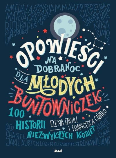„Lektura obowiązkowa na stoliku nocnym każdej dziewczynki albo młodej kobiety”. – Geri Stengel, „Forbes” Opowieści na dobranoc dla młodych buntowniczek, historie stu bohaterskich kobiet od Elżbiety I po Serenę Williams, to nowe wersje bajek stworzone, by zainspirować wszystkie dziewczynki. Książka, zilustrowana przez sześćdziesiąt artystek ze wszystkich zakątków świata, to najhojniej finansowana oryginalna publikacja w dziejach crowdfundingu. Wsparli ją czytelnicy z ponad siedemdziesięciu pięciu krajów świata. Prawa do tytułu sprzedano do dwudziestu ośmiu krajów i liczba ta stale rośnie! Wszystkie historie są utrzymane w konwencji bajki i każda składa się z jednostronicowego tekstu oraz portretu. „Każda z tych stu historii dowodzi, że wierząc w coś całym sercem, zyskujemy siłę, by zmieniać świat” – czytamy w przedmowie. Ten zbiór zainspiruje nie tylko najmłodszych, ale i nieco starszych do tego, by wierzyli we własne siły, marzyli odważnie i pielęgnowali w sobie wewnętrzną siłę. [https://www.azymut.pl/mw/?m=106&indeks=87729502492KS&itr=2