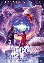 Przyszedł czas na finałową rozgrywkę! "Skoczkowie w czasie" to ostatni tom przygód Cole’a i jego przyjaciół w niezwykłym i niebezpiecznym świecie Obrzeży. Po wielu groźnych zdarzeniach, spotkaniu Błędnego Rycerza, walkach z robotami w Zeropolis i wizycie w nawiedzonym królestwie Necronum, wreszcie istnieje szansa na odnalezienie drogi powrotnej do domu. Tym razem bohaterowie zostaną wystawieni na wielką próbę, od której zależy ich dalsze życie... lub śmierć. Czy jesteście gotowi na wielki finał? "Pięć królestw" to kolejna po bestsellerowym "Baśnioborze" i "Pozaświatowcach" pełna akcji seria książek dla młodzieży autorstwa Brandona Mulla. Bohaterem serii jest nastoletni Cole Randolph, który w Helloween wybrał się z przyjaciółmi do nawiedzonego domu. Zamiast dobrej zabawy z dreszczykiem, chłopiec wraz z przyjaciółmi wpadł w niezłe tarapaty. Nastolatkowie trafili do dziwnej krainy zwanej Obrzeża Sambrii, gdzie jawa miesza się ze snem a magia z tym, co rzeczywiste. Na domiar złego, w wyniku nieszczęśliwego wypadku, młodzież zostaje rozdzielona. Przyjaciele Cole’a trafiają w bardzo nieprzyjemne miejsce, a wiedziony wyrzutami sumienia chłopak zrobi wszystko, by wydostać znajomych z kłopotów, w które za jego sprawą wpadli.