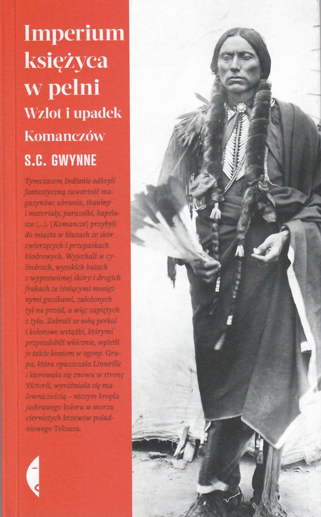 Choć w kulturze popularnej większą sławę zdobyli Apacze, Siuksowie czy Szejeni, to Komancze, znakomici jeźdźcy i genialni wojownicy, stworzyli najpotężniejsze indiańskie imperium w Ameryce Północnej, powstrzymali hiszpański napór z Meksyku i francuską ekspansję z Luizjany. Przez kilkadziesiąt lat prowadzili wojnę z białymi Amerykanami, opierając się ich kolonizacji. Historia zapamiętała Komanczów przede wszystkich jako okrutnych najeźdźców i łupieżców, jednak Gwynne rysuje znacznie bardziej złożony i bogaty obraz tego ludu. Imperium księżyca w pełni to nie tylko porywający opis dziejów Komanczów; to także szereg znacznie bardziej intymnych historii Ranalda Slidella Mackenziego, wybitnego przywódcy wojskowego, najbardziej bezwzględnego i skutecznego przeciwnika Indian, Cynthii Ann Parker, słynnej białej squaw, która porwana w dzieciństwie przez Indian, zakochała się potem w jednym z nich, urodziła mu dzieci i nigdy nie pogodziła się z tym, że zmuszono ją do powrotu do świata białego człowieka, a wreszcie Quanaha Parkera, jej syna, jedynego Głównego Wodza Komanczów, być może najbardziej fascynującego człowieka, który kiedykolwiek przemierzał Wielkie Równiny. Dla tych, którzy zaczytywali się w dzieciństwie w opowieściach o Indianach, mam dobrą wiadomość: powrót jest możliwy. Ta książka, choć historyczna i faktograficzna, została napisana przez kogoś, kto naoglądał się westernów i spędził mnóstwo czasu na lekturach Coopera i innych. Jeszcze słychać tętent koni i świst wypuszczanych strzał, a stronice tak szybko przemykają między palcami, jak stada cwałujących bizonów. Dużo akcji, lecz jeszcze więcej wiedzy. O Komanczach wiedziałem dotąd tyle, co napisał Karol May: że byli okrutnymi i tchórzliwymi wrogami ukochanych Apaczów, że na pustyni, gdy brakło wody, pili krew kojotów. Gwynne odsłania dzieje jednego z najpotężniejszych plemion Wielkich Równin, opowiada fascynująco o jego wielkości i upadku, a także o jego największym wodzu Quanahu Parkerze, synu białej kobiety i Indianina. Świetna lektura świetnie przetłumaczona i opracowana. Marek Bieńczyk