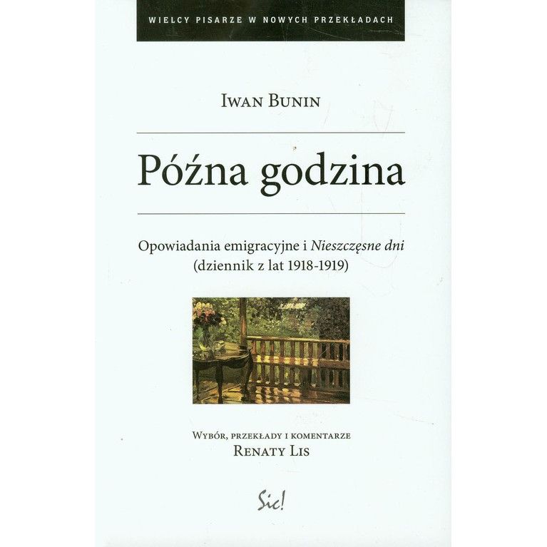 Książka z serii Wielcy pisarze w nowych przekładach. Wybrała, przełożyła, kalendarium i objaśnieniami opatrzyła Renata Lis. Tom prezentuje późne arcydzieła prozatorskie (w tym również opowiadania niewydane nigdy w XX wieku, w Rosji i w Polsce, z powodu cenzury) Iwana Bunina, rosyjskiego noblisty, oraz jego dziennik z lat 1918-1919, to jest z okresu tuż przed emigracją pisarza z Rosji do Francji. Całość dopełniają: wystąpienie Bunina pt. Misja emigracji rosyjskiej, kalendarium jego życia i twórczości oraz słowo od tłumaczki. Książka ma za zadanie po raz pierwszy ukazać twórczość Iwana Bunina w kontekście najważniejszego wydarzenia w jego życiu, jakim była zagłada Rosji ziemiańsko-chłopskiej (ros. Rus' narodnaja) i uświęconych tradycją form jej życia i kultury wskutek rewolucji bolszewickiej, a więc w kontekście tej katastrofy założycielskiej, na której ufundowane jest całe pisarstwo Bunina, będące w założeniu - podobnie jak w polskiej literaturze Pan Tadeusz - próbą ocalenia tych utraconych form życia w sztuce, przez autora, który z racji swego urodzenia czuje się depozytariuszem dawnej Rusi: jej historii, tradycji, wierzeń, pejzażu, architektury, strojów, stylów życia i kultury symbolicznej. źródło opisu: Wydawnictwo Sic!, 2012 źródło okładki: http://www.wydawnictwo-sic.com.pl/ksiazka/336/P%C3...»